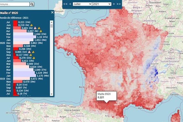 en cliquant sur la carte, l’identifiant de la maille apparait